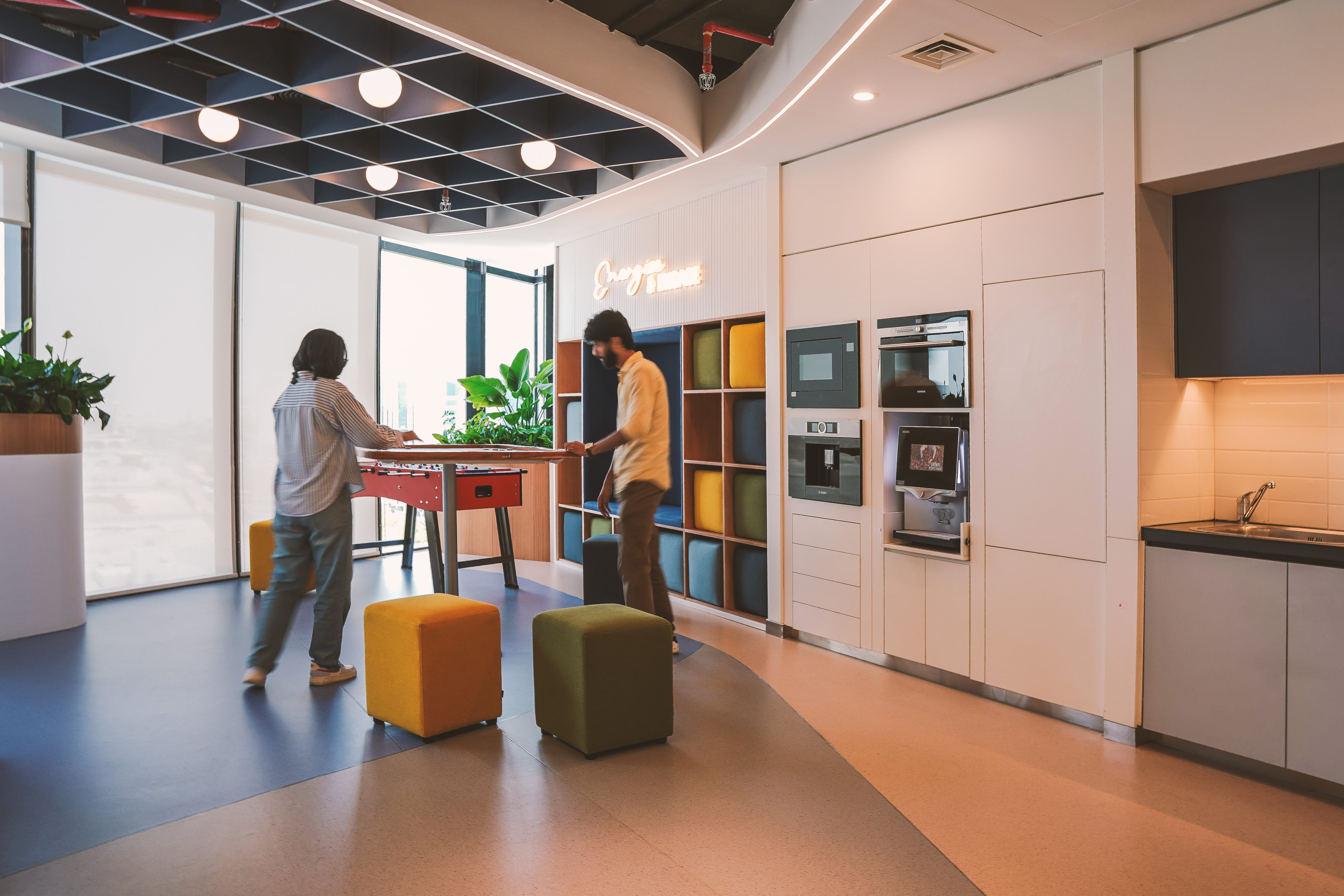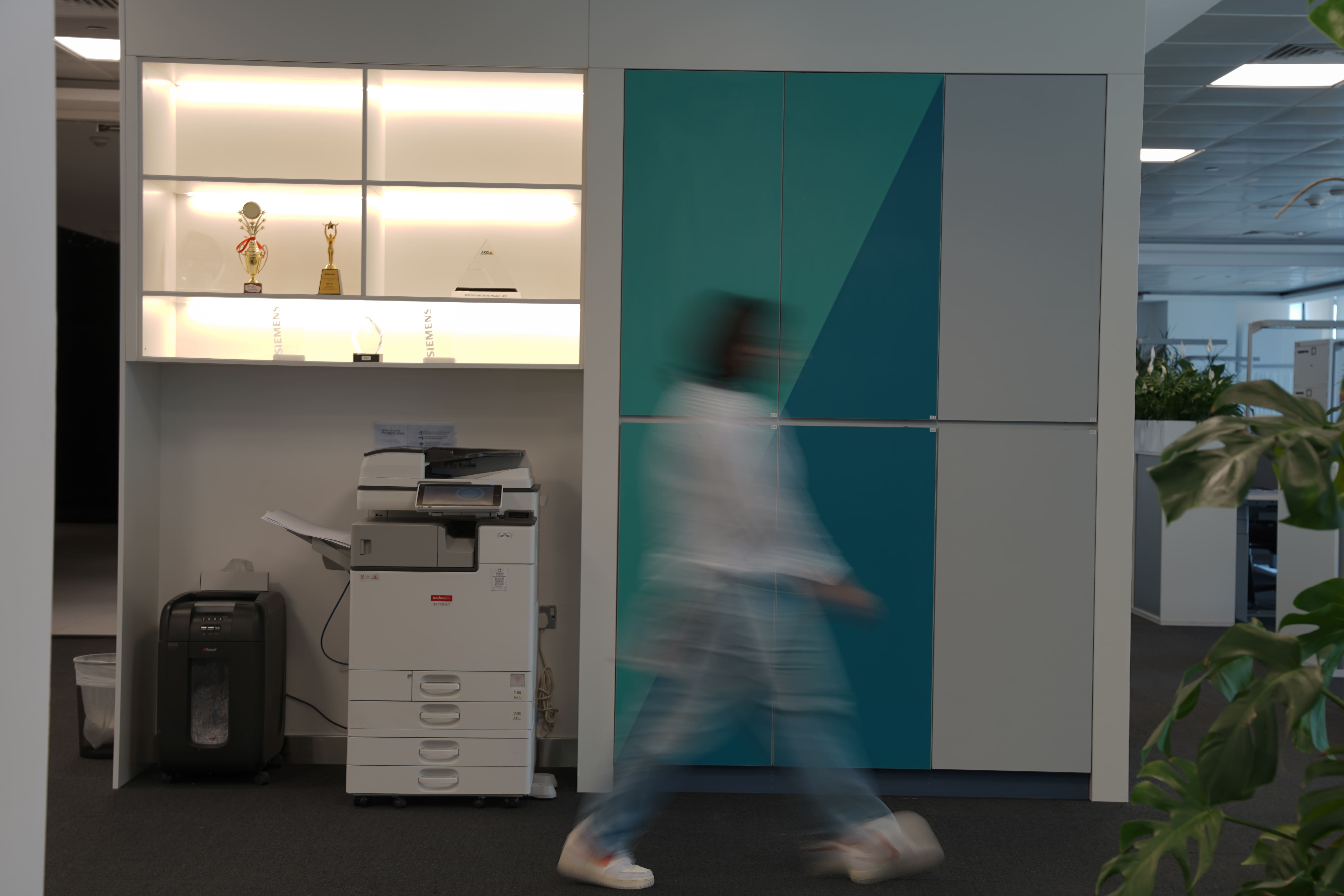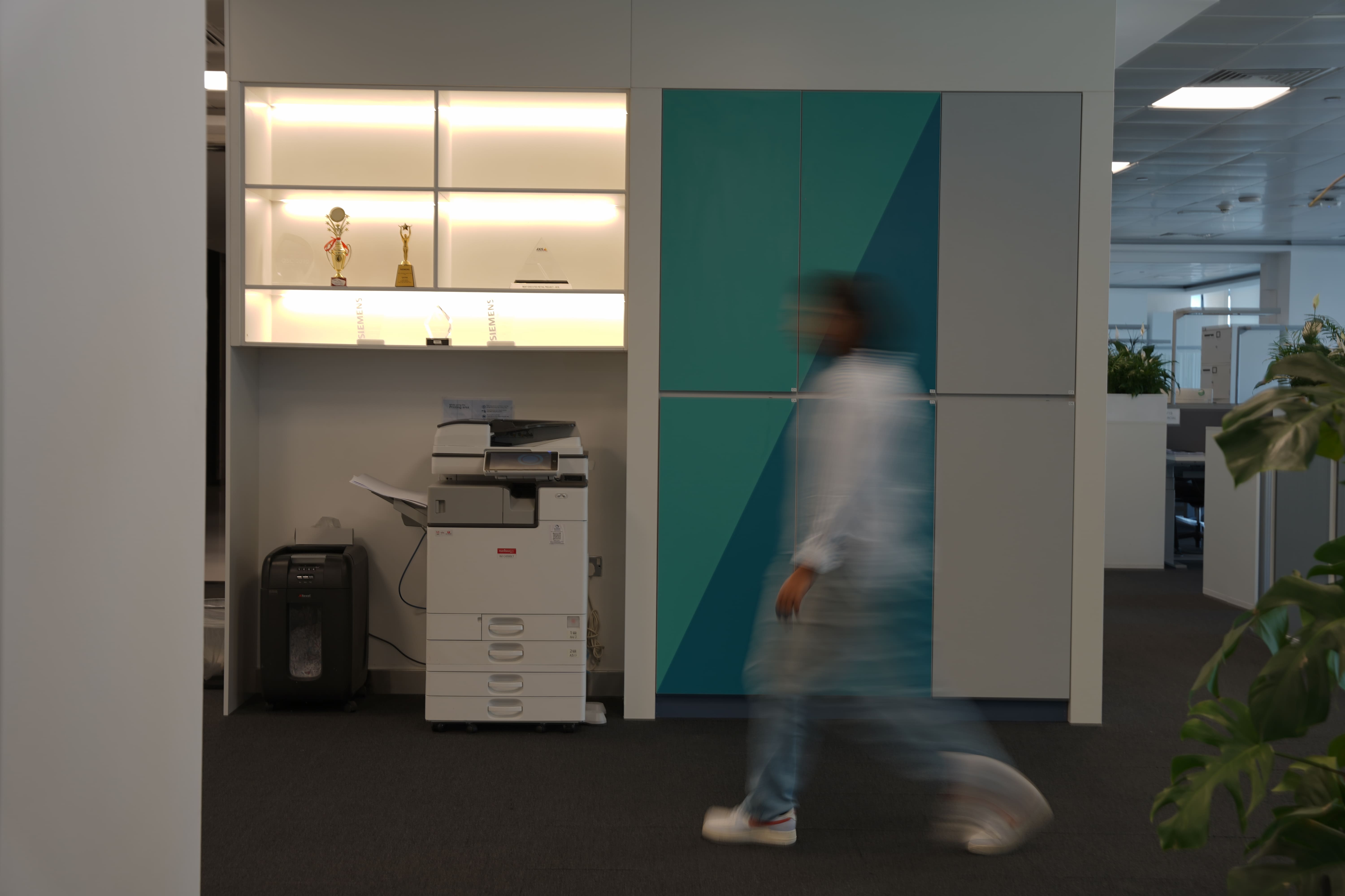 Design elements aligned with Siemens’ identity, creating a cohesive and engaging workplace. - Connected environment: